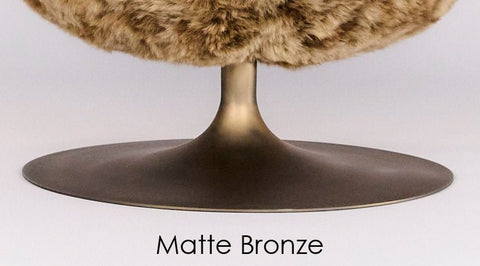Materials: Handmade lounge chair adorned with various stuffed swans.  Metal disk base available in various finishes.  Polyester plushes, black New Zealand sheepskin, metal, wood, and textile fabrics.  Swivel.