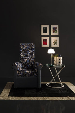 Materials: Armchair with hardwood frame covered with expanded foam. Velour upholstery in a variety of colors.