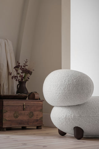 The Flock collection by Noom is designed to create a comforting and visually appealing atmosphere in your home.  Each Flock piece is personalized and unique, adding character and style to any space. The collection's name reflects its purpose as a peaceful retreat and central gathering place, where gentle, organic shapes, natural elements, and pleasing textures combine to create an inviting and cozy environment.