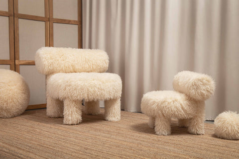 The Gropius Baby Chair CS1 Fluffy Edition by Noom is featured in their modern furniture line, commemorating the centennial of the Bauhaus School's inception in Germany. The collection embodies the principles of functionalism, conciseness, and the fusion of craft and art, resulting in buildings and objects that feature simple geometric shapes. This modernist approach, championed by Noom, is a nod to the pioneering minds who brought these principles to life.