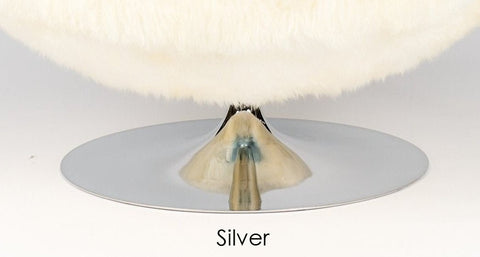 Materials: Handmade lounge chair adorned with various stuffed owls.  Metal disk base available in various finishes.  Polyester plushes, black New Zealand sheepskin, metal, wood, and textile fabrics.  Swivel.