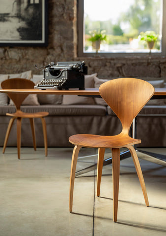 The Cherner Chair, designed by Norman Cherner in 1958, is a hallmark of mid-century modern design. Instantly recognizable for its sculptural curves and slender profile, the chair is crafted using molded plywood technology—a revolutionary method at the time that allowed for strength, comfort, and an elegantly lightweight appearance. The hourglass silhouette of the backrest, paired with flared arms and legs, gives the Cherner Chair its distinct, organic look, which has become iconic in both residential and commercial interiors.