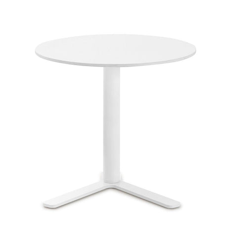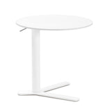 Materials:  Side table with height-adjustable top in several finishes (10mm thick HPL or 16mm thick wood).  Metal base and column powder-coated white or black.